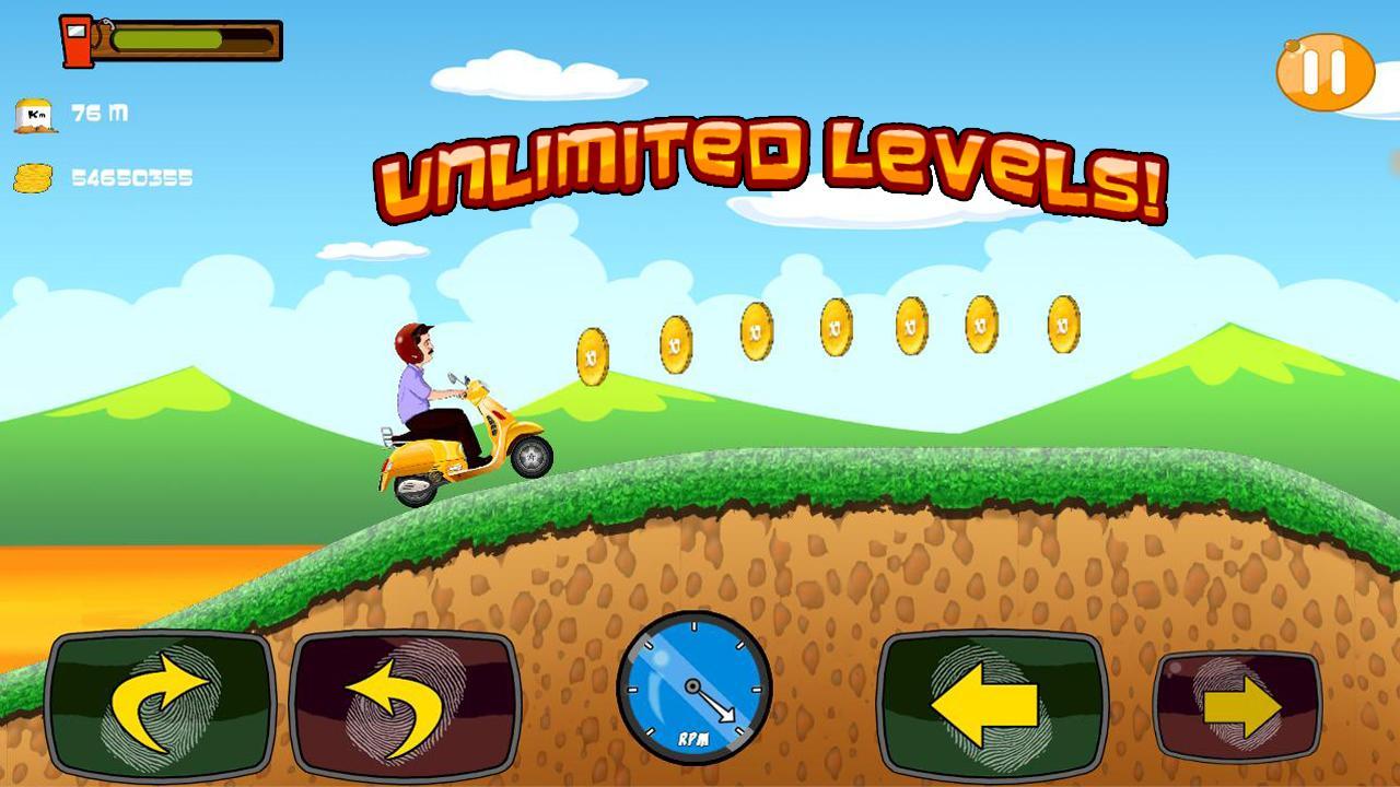 Mukundi Ki Sawari is a physics based 2D driving game featuring a Mission Mode and a Story Mode.Vehicles in the game features over-the-top physics and the levels are sharp enough which gives the you a sensation of real thrill during the game. The game starts with a bicycle which is the only unlocked item available, You can thereafter unlock the other vehicles and upgrade them further for more thrilling experience by using the in-game currency.